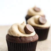 oooh, i’ve made chocolate cupcakes with peanut butter frosting before, but never with a pb cup inside – what a cute idea! it also makes for a lovely presentation with the pb cup as a garnish on the frosting. i’m definitely going to try this next time i make my version! =)