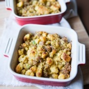 Sage and thyme and cornbread and sausage… this dressing is the dressing of my dreams! For serious!! I really love all the flavors going on and think that my family would absolutely love this version of a T-Day classic as well. Thanks, Julie! And Happy Thanksgiving to you and your family!! 🙂